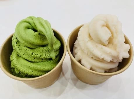 アイスクリームは国産大豆、オリゴ糖から作られており、絹ごしのしっとり滑らかな舌触りが感動的です。一番人気は「2種ダブル豆腐」で、絹ごし豆腐と黒ごまきなこ豆腐、両方の味を堪能できます。