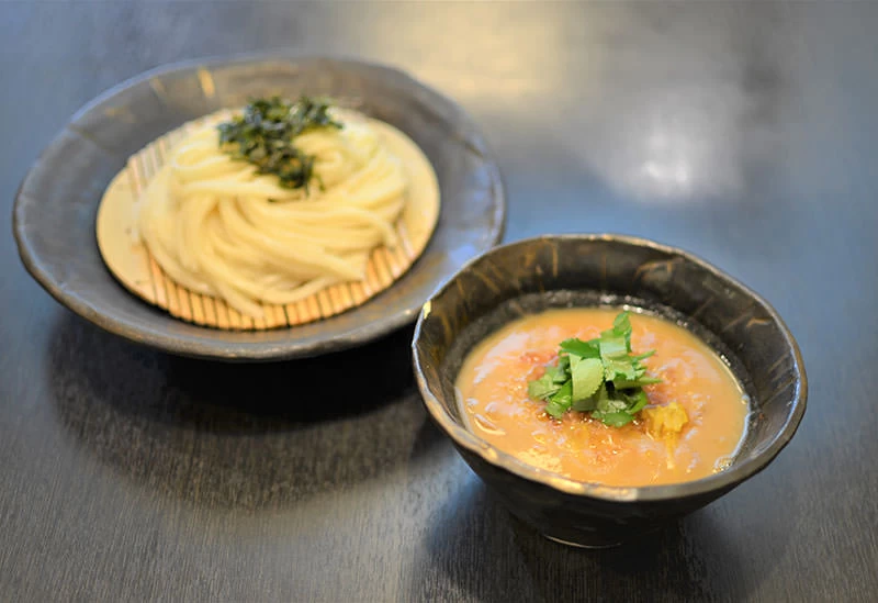 自家製のうどんを堪能できる自家製麺 新渡月には、京都や滋賀の食材を中心に使用したオリジナリティあふれる創作うどんが揃っています。季節によって小麦粉の配合を変え、二段階熟成させたツルツルモチモチ食感の純生うどんをお楽しみください。