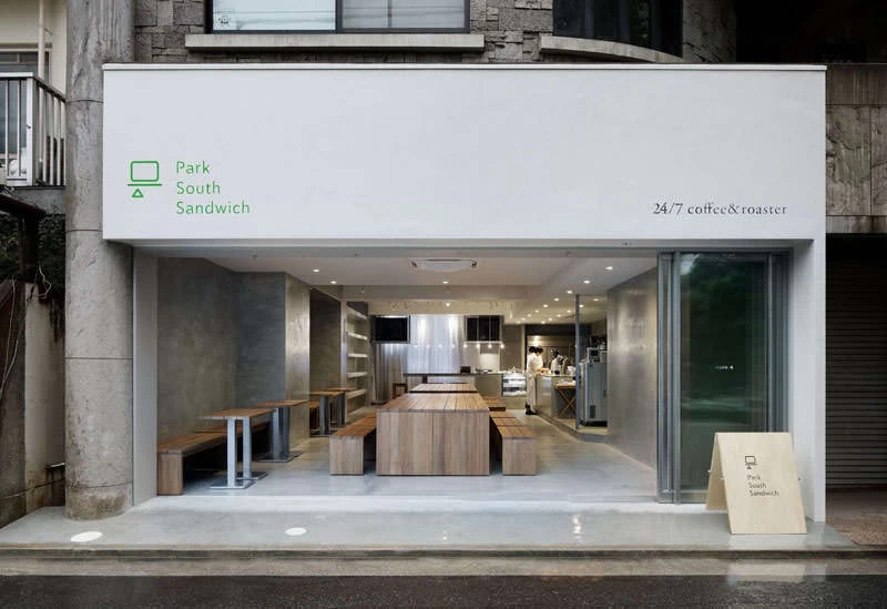 「Park South Sandwich(パークサウスサンドイッチ)」は公園の緑を眺めながら寛げる、サンドイッチとコーヒーのお店です。人気メニューは、「アボカドとサーモンのチーズクリームサンド」や「しそ香るチキンカツ」などで、具材がこぼれるほどの贅沢なボリュームが自慢。また、6つの味から選べるクロワッサンドーナツや、ハンドドリップコーヒーも絶品です。外観は、建物の前面に壁がないオープンタイプのデザインとなっており、開放的な空間で過ごせます。