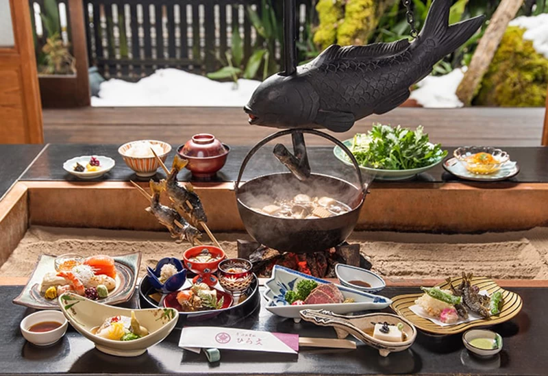 近江鉄道新八日市駅から車で約4分の場所にある日本料理店です。店主は「全国日本料理コンクール」で数々の賞を受賞しており、「郷土料理の昇華」をコンセプトに、独自のアプローチを取り入れた料理を提供しています。地元・滋賀県の食材を使用し、一品ずつ心を込めて調理。会席料理は基本的に2日前までの予約が必要で、地酒やワインも豊富に取り揃えています。