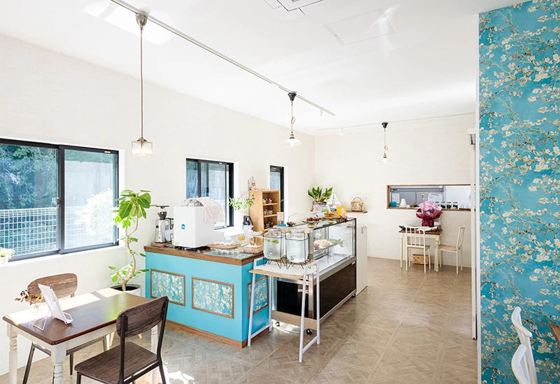 愛知県岡崎市滝町に佇むカフェでは、店の裏手を流れる青木川のせせらぎを感じながら、季節の果物を使ったスイーツやオリジナルティーを楽しめます。水色の花柄の壁が印象的な韓国風の店内は、お洒落で落ち着いた雰囲気に包まれ、心安らぐ時間を演出します。旬の素材を主役にしたスイーツは、食感や彩りにもこだわった仕上がりで、訪れるたびに新たな魅力に出合えます。川と小さな滝を望むテラス席もあり、自然に癒やされながらゆったりとしたひとときを過ごせます。