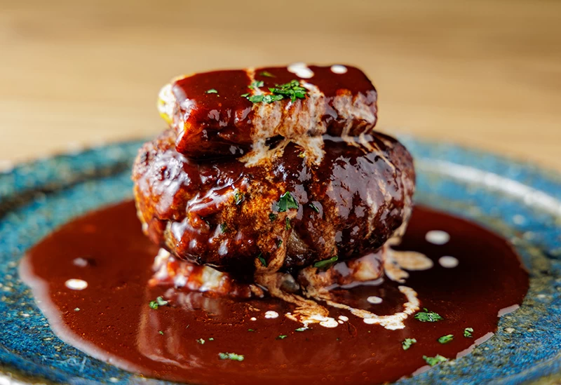 JR鳳駅より徒歩約10分の「羽衣びーふ亭」では、シェフが目の前の鉄板で焼き上げる上質な国産肉を、五感で楽しむ特別な時間を過ごせます。鮮やかな手さばきとともに立ち上る炎や、焼き上がる音と香ばしい香りが食欲を誘い、ライブ感あふれる演出が魅力です。ランチでは気軽にステーキやハンバーグを味わえ、ディナーでは前菜からデザートまで揃うコース料理が堪能できます。熟練の技で仕上げるジューシーなステーキは格別の味わい。木のぬくもりを基調とした落ち着きある店内は、記念日や会食など大切なひとときを彩る上質な空間となっており、特別な日の食事にもふさわしい一軒です。