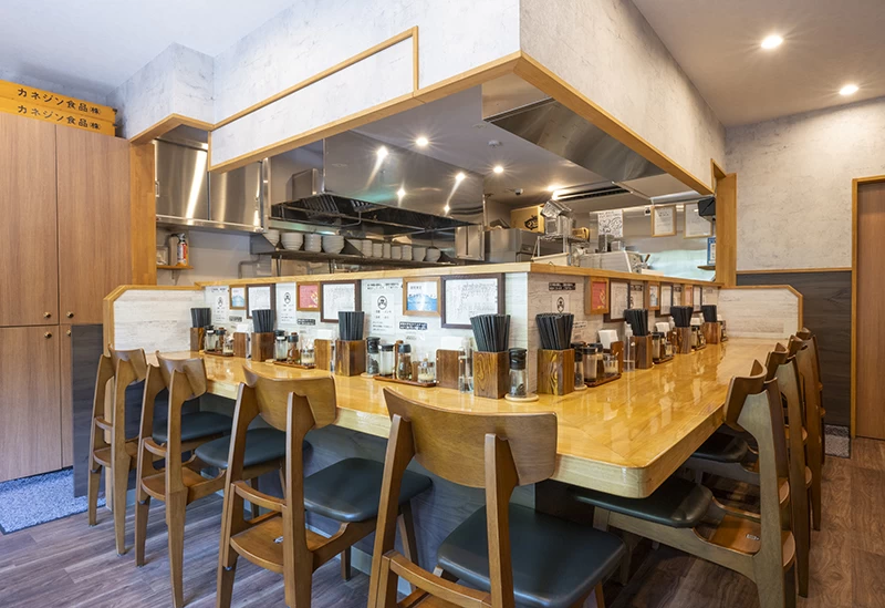 ゆとりある造りの店内には、カーテンを閉めると半個室のように使えるテーブル席や臨場感あふれるカウンター席、渋谷の街を眺めながら食事を楽しめる席もあります。ブラウンを基調に赤やグリーンなどの差し色が使われたおしゃれな店内は、まるでカフェのような雰囲気です。