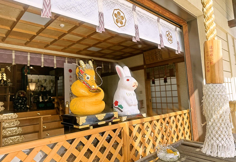 「湯倉(ゆくら)神社」は湯の川温泉の鎮守として親しまれており、商売繁盛、厄除開運、縁結び、安産などのご利益があるとされています。境内には、うさぎを白い玉砂利で表現した「竹林と白うさぎ」や、参拝者の願いを祈願する像「なでうさぎ」など、神獣であるうさぎがモチーフの見どころがいっぱい。授与品はカラフルな色合いのお守りや、北海道のご当地おみくじなどユニークなものが揃い、旅のお土産にもぴったりです。
