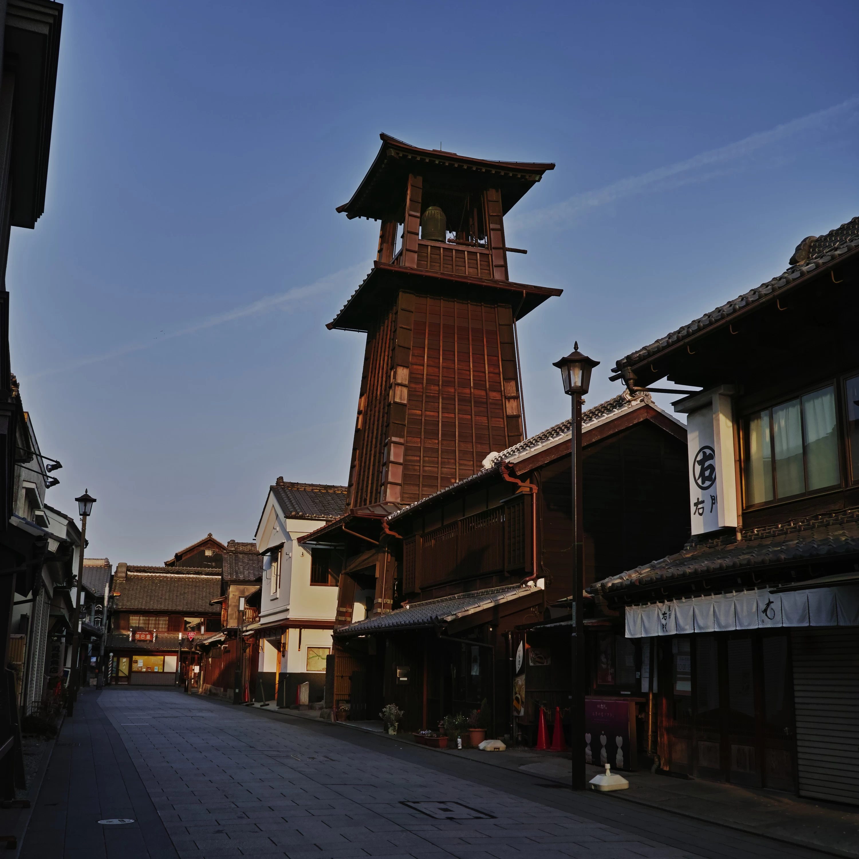 川越のシンボルである「時の鐘」は、江戸の情緒が残る歴史的建造物で、長きにわたり市民に時を告げてきました。現在も1日4回美しい音色を響かせ、環境省の「残したい日本の音風景100選」に選ばれています。時の鐘は音色だけでなく、美しい景観や周辺のグルメも魅力です。昼間は食べ歩きで賑わい、店舗が閉店する17時以降は、静かで落ち着いた雰囲気の中で、ライトアップされた時の鐘をゆっくり楽しめます。