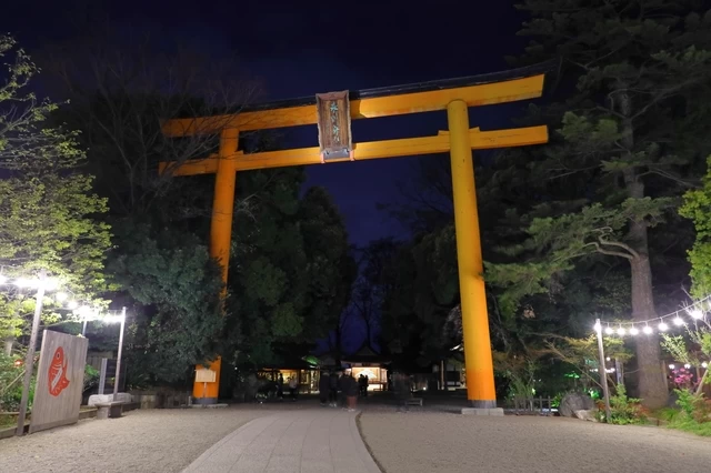 縁結びの神様として古くから親しまれる川越氷川神社。夜に訪れると、昼間の賑わいが落ち着き、境内は静謐な空気に包まれます。灯籠や社殿の明かりが参道を柔らかく照らし、季節ごとに移ろう木々が幻想的な表情を見せてくれます。静けさの中に木々のざわめきと祈りの気配がゆるやかに広がる時間は、心を穏やかにしてくれるでしょう。恋愛成就や夫婦円満を願う参拝はもちろん、川越の夜をしっとりと締めくくるにふさわしい場所です。