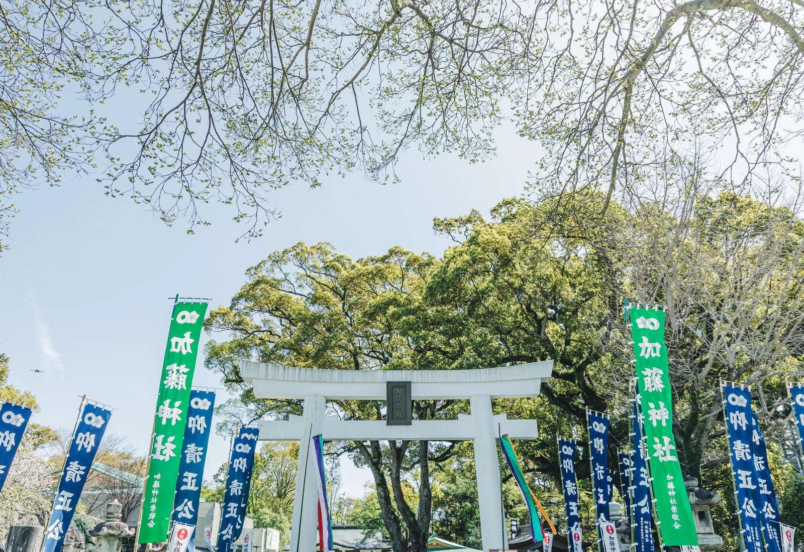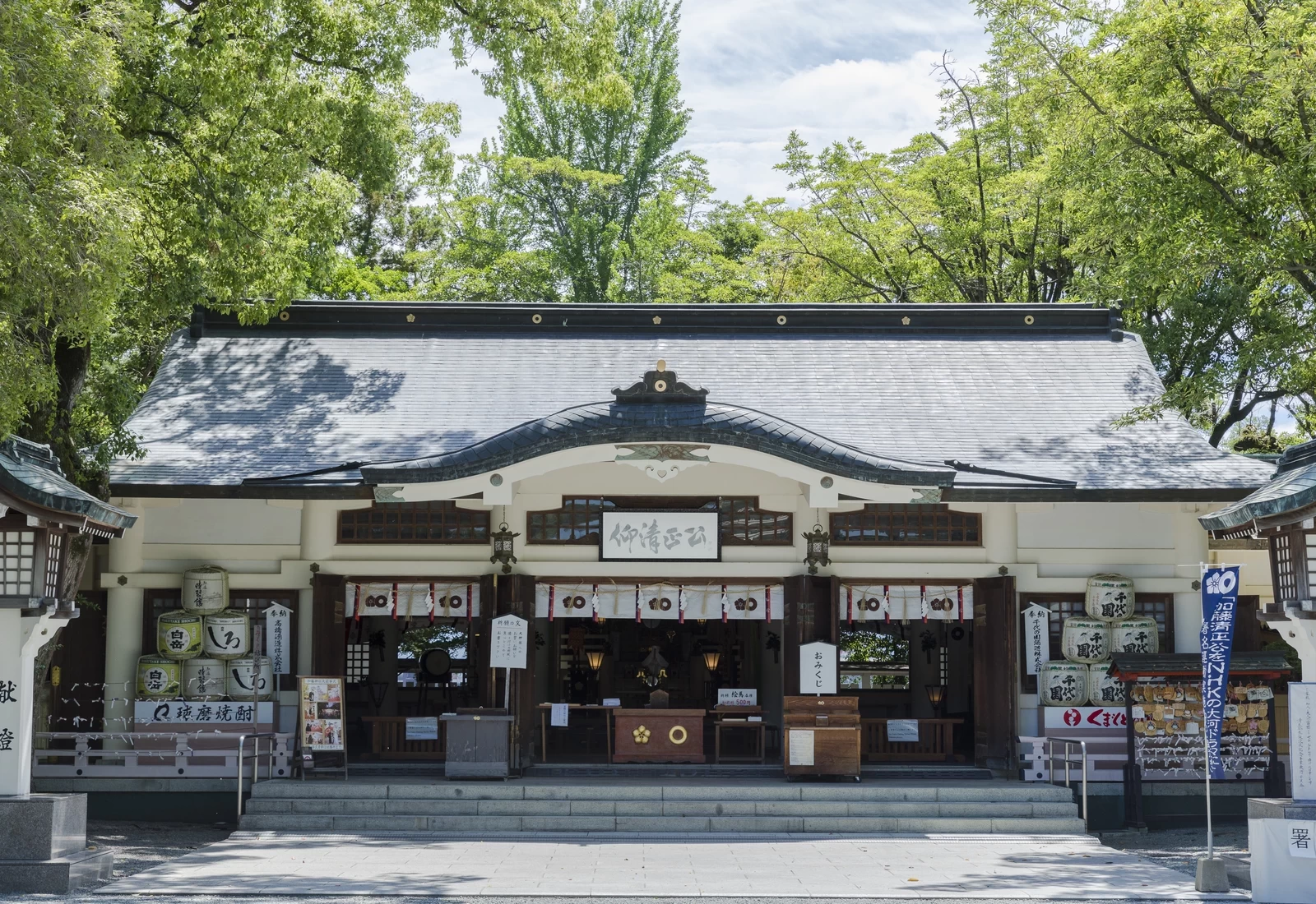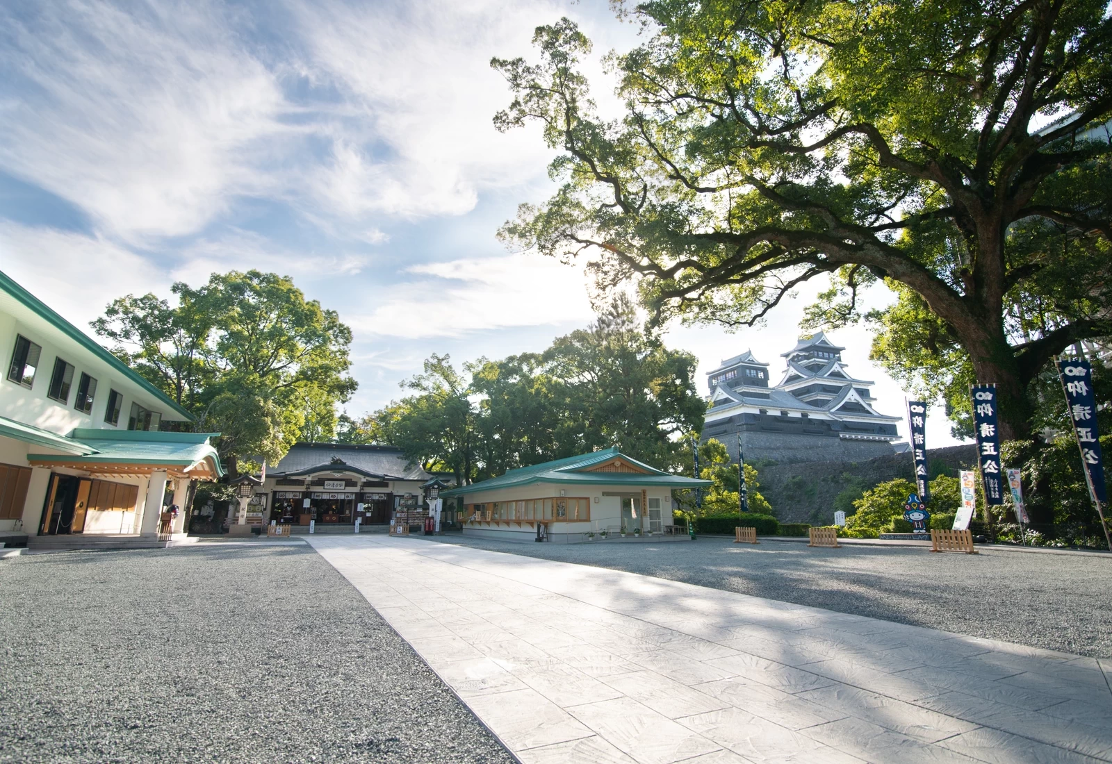 熊本城から徒歩約1分のところにある神社です。「白髭大明神」がご祭神で、白髭さんという愛称でも呼ばれています。加藤清正が1588年(天正16)に熊本を訪れた際に建立。熊本城の守り神として400年以上に渡って、多くの人に親しまれています。13もの神様を祀っており、良縁や健康、合格などの御利益があるといわれ、熊本市内でも人気のパワースポットです。