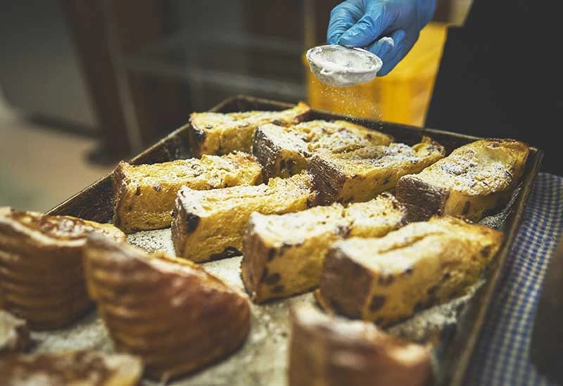 スペイン石窯で焼き上げた極上の焼きたてパンを楽しめる、人気ベーカリーの創業店です。2012(平成24)年オープンの「聖一色店」を含めて静岡に3店舗を展開しています。食パンやカレーパン、クロワッサンといったベーカリーならではのパンが並ぶほか、季節や期間限定のパンなど豊富なラインアップが魅力。焼きたての香り豊かなパンは、お土産だけでなく、差し入れ用としても喜ばれます。