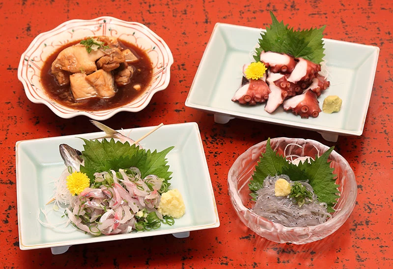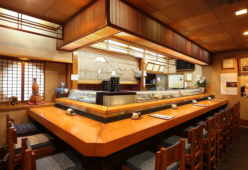 静岡県伊豆の国市、伊豆長岡温泉街にある地元で愛されている老舗寿司店です。甘みのある赤酢を使用したシャリが特徴的。テーブル、お座敷があり、幅広い年齢層の方々が利用できるほか、宴会可能な広間もあります。新鮮な魚介を使ったお寿司や海鮮丼、魚料理を堪能できます。古くから地元の方に愛され続けてきた人気メニュー「ひょうたん御膳」は、先代から受け継がれているものです。メニューのひとつ、太巻き寿司はお土産としても重宝します。