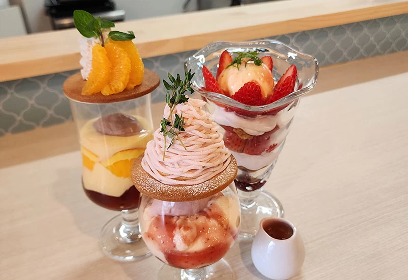 20年以上という豊富な経験を武器に、パティシエールが手がける進化系パフェを楽しめるスイーツ店。天竜川駅より車で約5分の場所にあります。進化系パフェは、おもわず写真におさめたくなる、かわいらしいケーキのような見た目が魅力。インスタ映えを狙う方にもおすすめです。クッキーやパウンドケーキ、マドレーヌといった焼き菓子は17種類も用意されており、静岡への帰省や旅行の際のお土産として便利です。