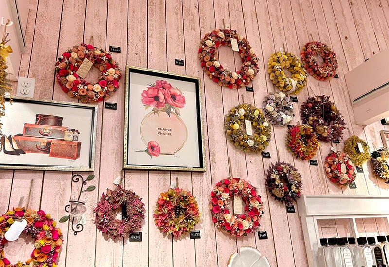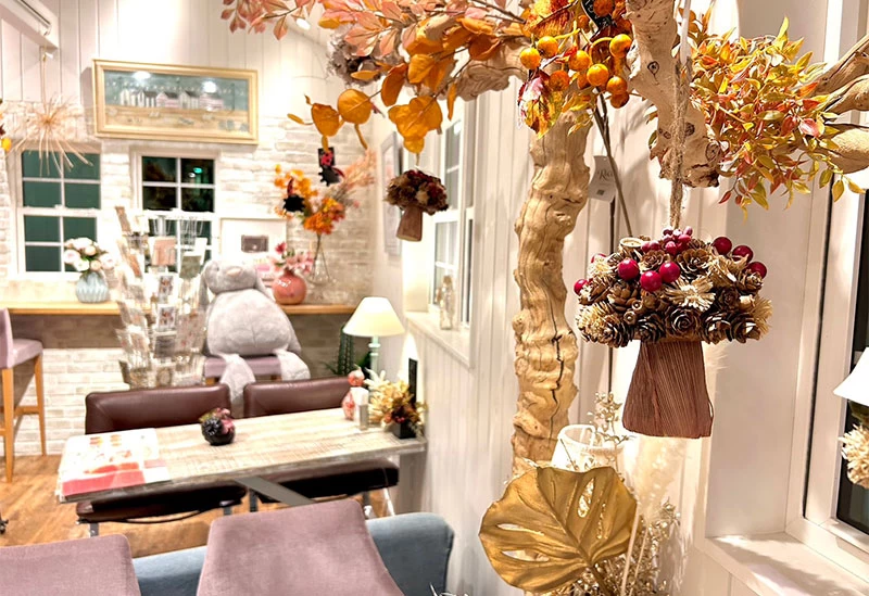 JR御殿場線足柄駅より車で約10分の場所にある、生花店運営のカフェ&ギフトセレクトショップ。2019(平成31)年に東名高速道路足柄スマートインターチェンジが開通したことで、車でのアクセスもしやすくなっています。華やかで非日常を感じさせる空間で、自家製のタルトやケーキを堪能できます。ハンドメイドのアクセサリーや雑貨のセレクトショップが併設されているため、友人や大切な方へ贈るお洒落な静岡土産を探している方におすすめです。
