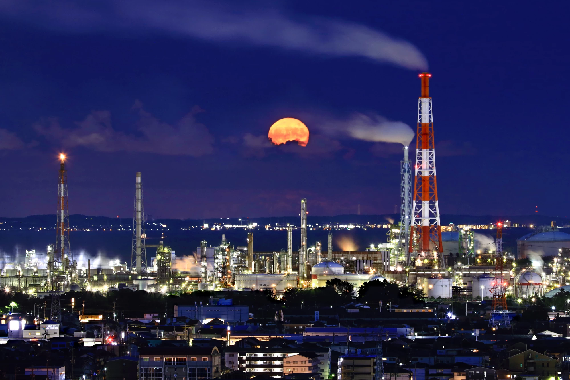 数ある工場夜景の中でも、特に高い人気を誇るのが四日市コンビナートです。三重県四日市市は、昭和30年代に日本で初めて大規模な石油化学コンビナートが建設された産業都市として知られています。昼間は力強く稼働する工場群が、夜になると一転して幻想的な光を放ち、その美しさから工場夜景スポットとして注目を集めています。