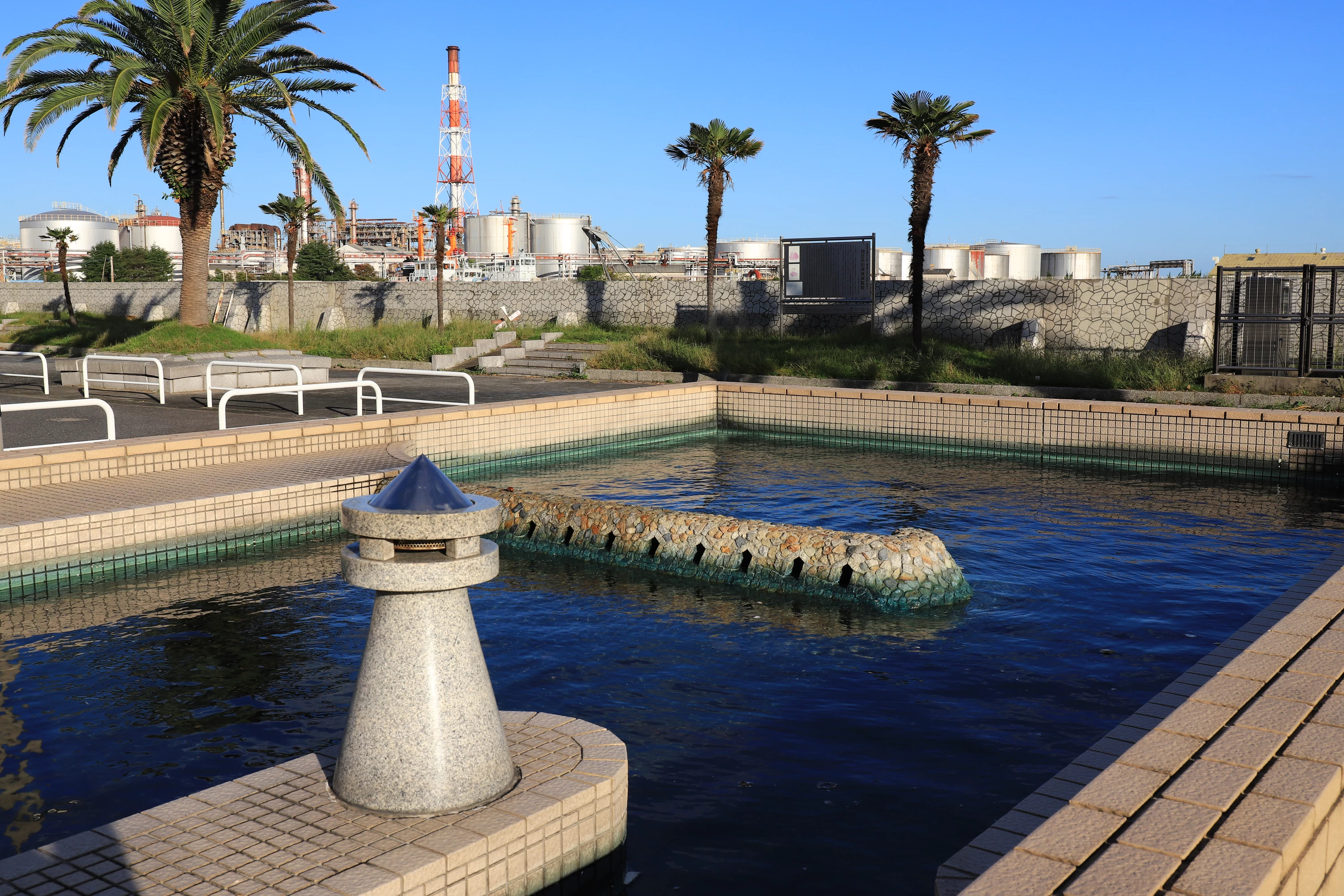 夜になると園内は落ち着いた雰囲気に包まれ、デートスポットとしても人気です。稲葉水門に隣接しているため、太平洋セメントやコスモ石油の工場プラントの夜景が広がります。遊歩道を散策しながら、自分だけのお気に入りの夜景を見つけてみてはいかがでしょうか。