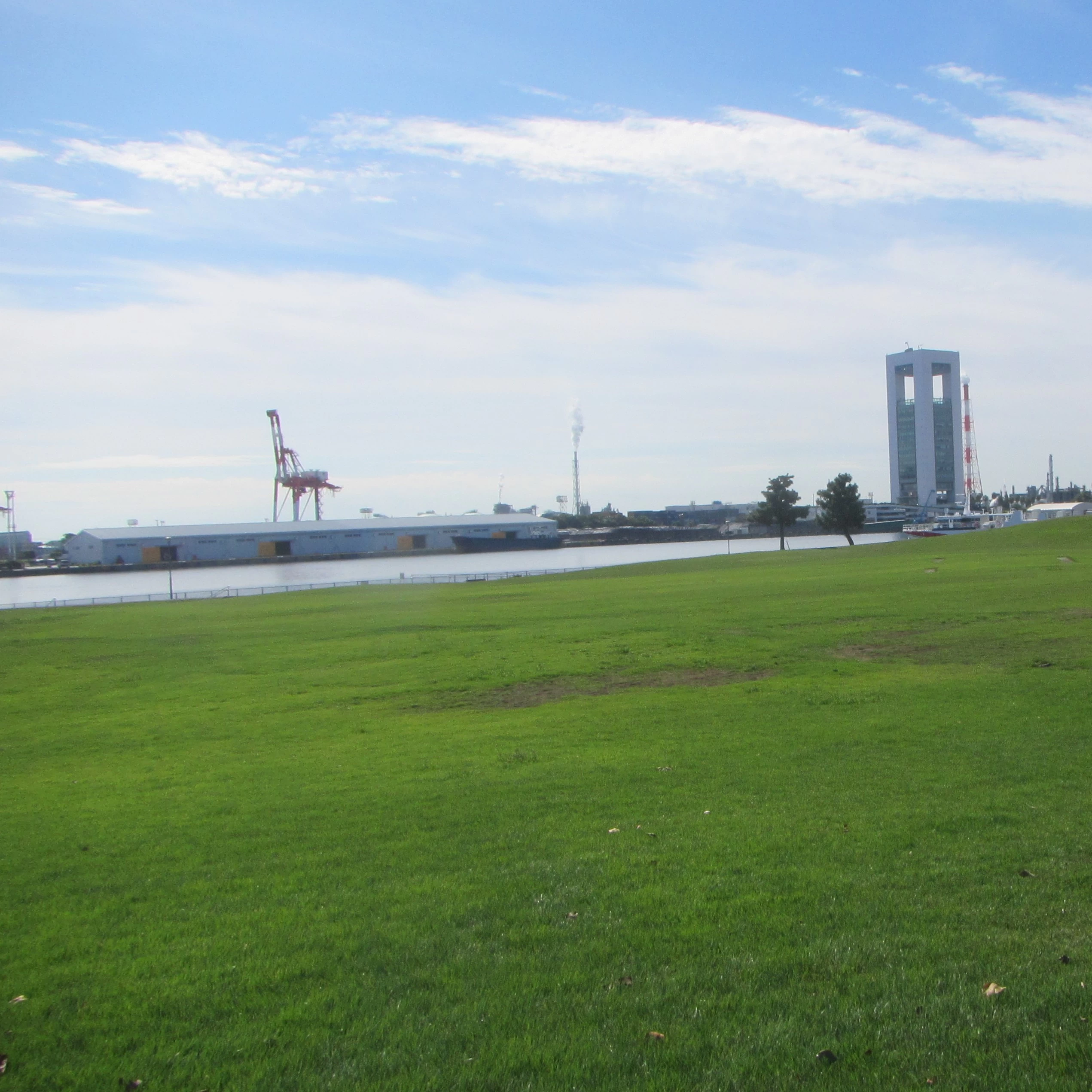 夜になると、霞コンビナートの美しい夜景を眺められます。対岸にある化学工場の灯りが水面に映り、工場との距離も近いため、迫力のある景色が楽しめます。広々とした公園内では、落ち着いた雰囲気の中でゆったりと夜景を堪能できるでしょう。