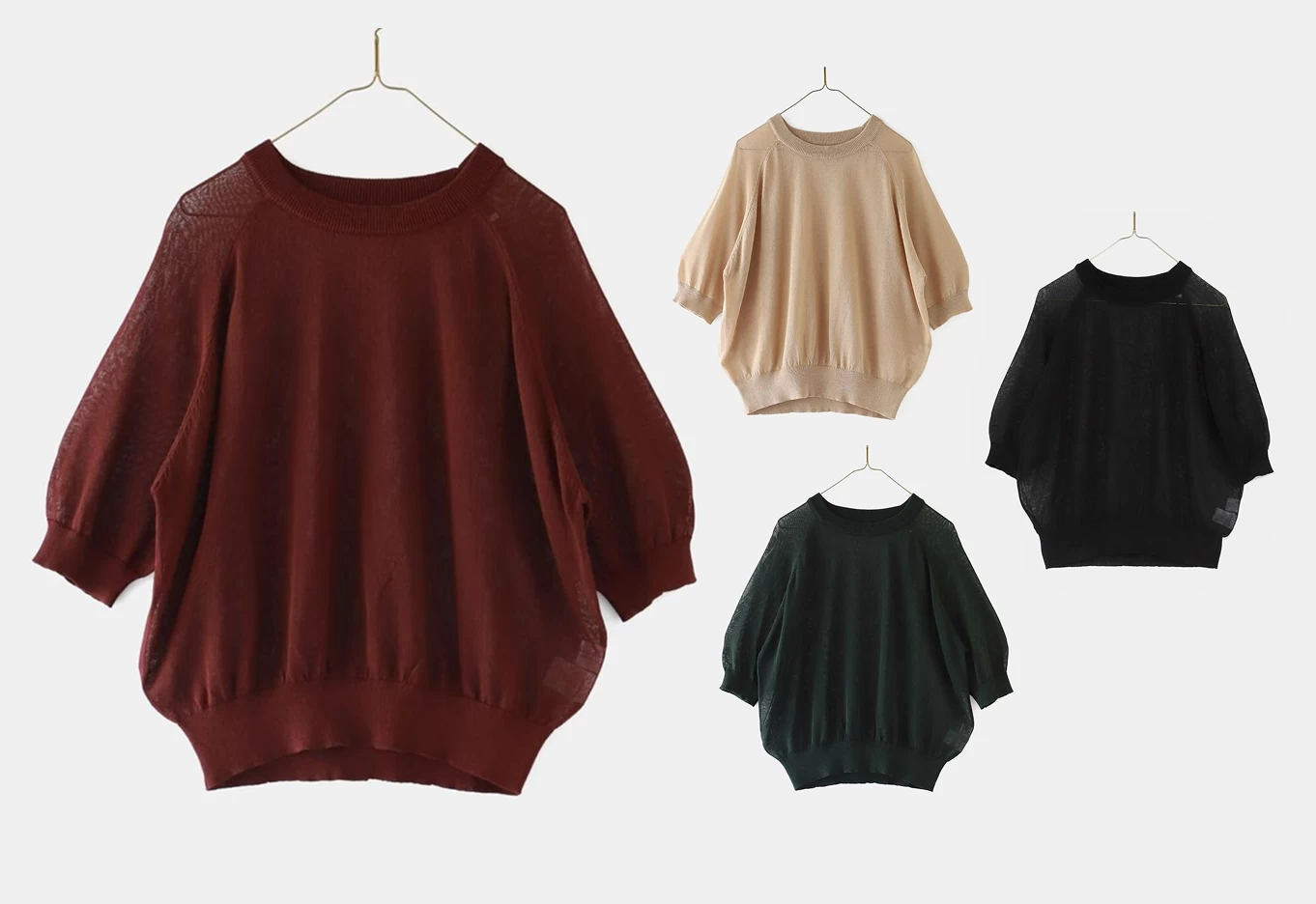 これからの時期に大活躍の半そでシアーニットは、1枚で着てもインナーにも使えて万能なアイテム。