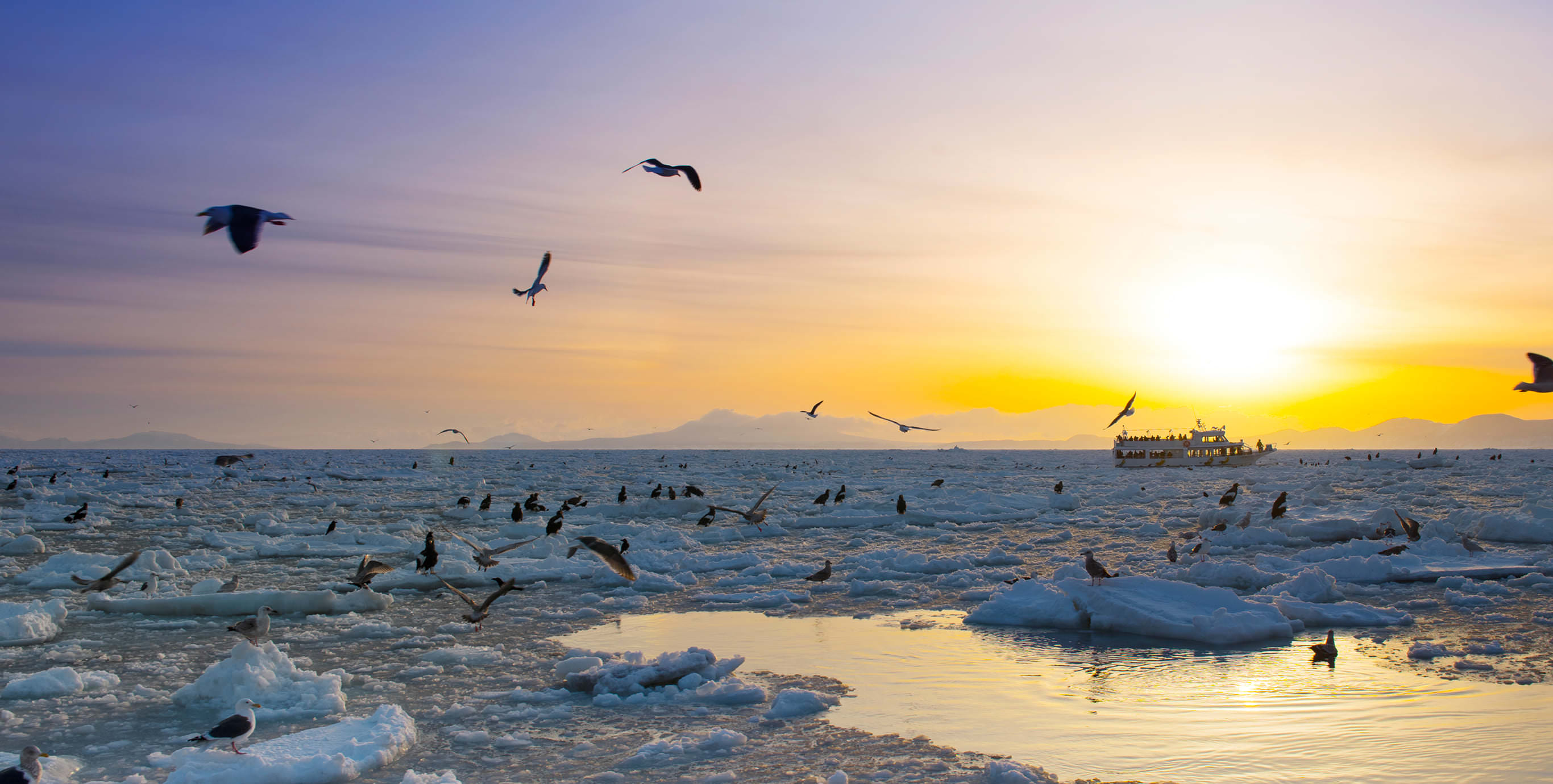 北海道といえば、冬のシーズンも醍醐味。知床の生態系に欠かせない流氷をはじめ、