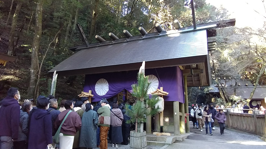 - 古代より“神が在わす山”と信仰されてきた多度山にあり、江戸時代には伊勢参宮とともに詣でる“北伊勢大神宮”と崇められた。