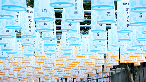 境内に献灯された数千灯もの「みあかり」が、幻想的な雰囲気を醸し出す多度大社の夏の風物詩。 |