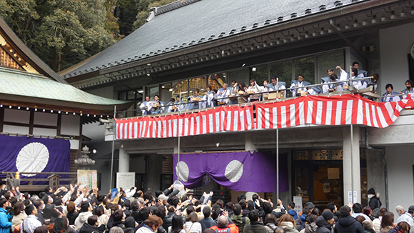 立春の前日にあたる節分の日に斎行され、当日は厄除けの参列者による、厄落としの福豆まきが奉仕される。 |
