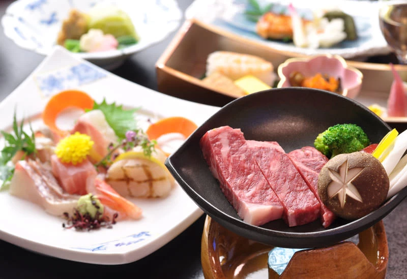 食事は個室ダイニングで、相模湾の魚介や上質な和牛を盛り込んだ季節の会席料理を提供。箱根の自然に包まれながら、湯と食の贅沢を堪能しましょう。