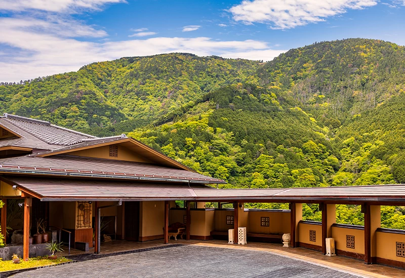 箱根湯本の旧東海道沿いに位置する「静観荘」は、全9室に専用露天風呂を完備した大人のための隠れ宿です。客室は、湯坂山の絶景を望むテラス付きの5室と、中庭の離れに情緒あふれる湯処を設けた4室。全室で源泉掛け流しの天然温泉を、好きな時に好きなだけ堪能できます。