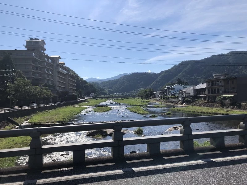 倉吉駅から三朝温泉へは、バスまたは車での移動となります。路線バスを利用した場合、三朝温泉まで所要時間は約20分です。車の場合は距離にして約9kmとなります。