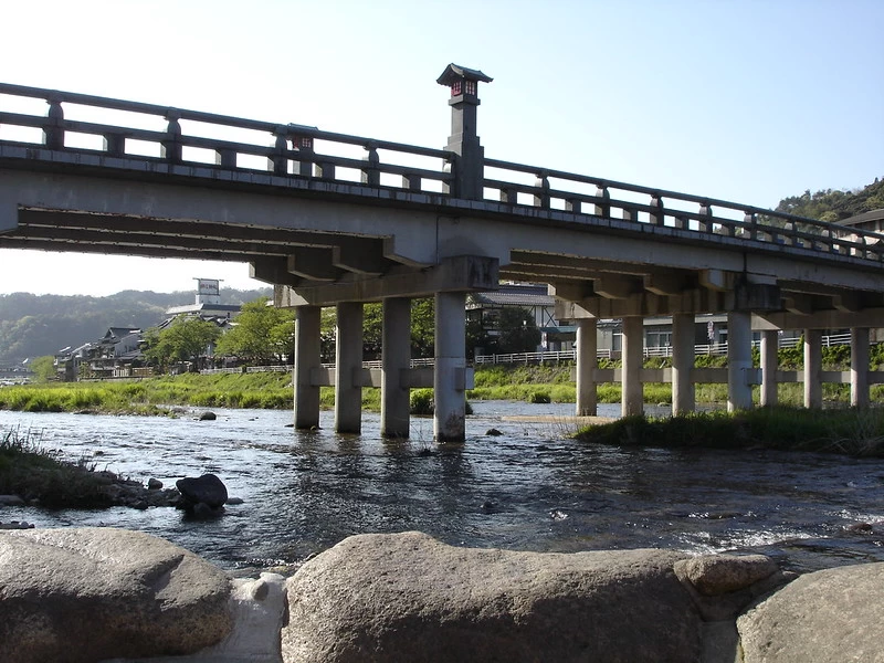 三朝温泉の温泉街には、「三朝大橋」と呼ばれる橋があります。この橋のたもとには、三朝温泉の名物として知られる「河原風呂」があり、文字通り河原に湧く温泉として、三朝温泉のシンボル的存在となっています。川のせせらぎを聞きながら、のんびりと入浴を楽しめることから、多くの人に親しまれています。
