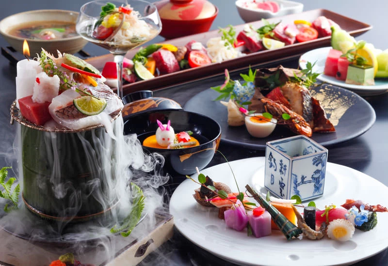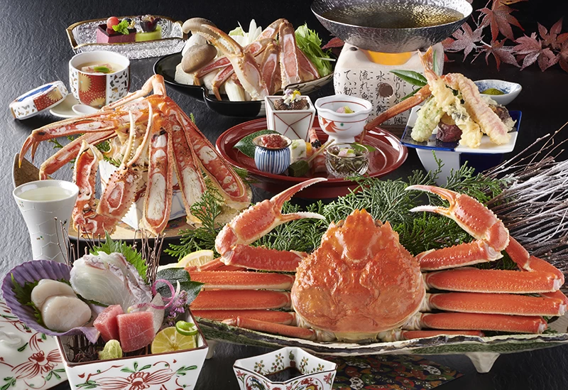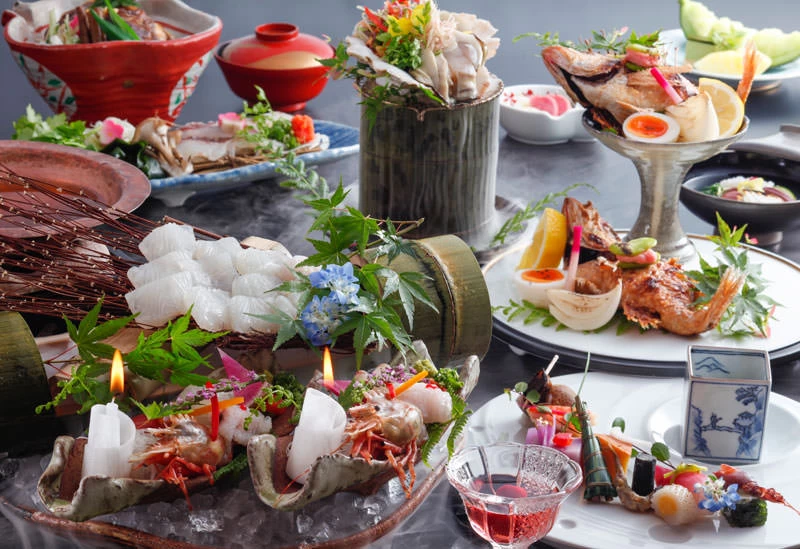 鳥取の旬の食材をふんだんに使用し、彩り美しく盛り付けられた料理は、味わいはもちろん、目でも楽しめる逸品揃いです。春はモサエビ、夏は白イカや岩ガキ、秋は松茸、冬は松葉ガニと、山陰・鳥取を代表する食材を季節ごとに味わうことができ、鳥取の食の魅力を存分に堪能できます。特にカニ料理は、ろうそくの灯りを用いた幻想的な演出で提供されるなど、提供方法にも細やかな工夫が凝らされています。