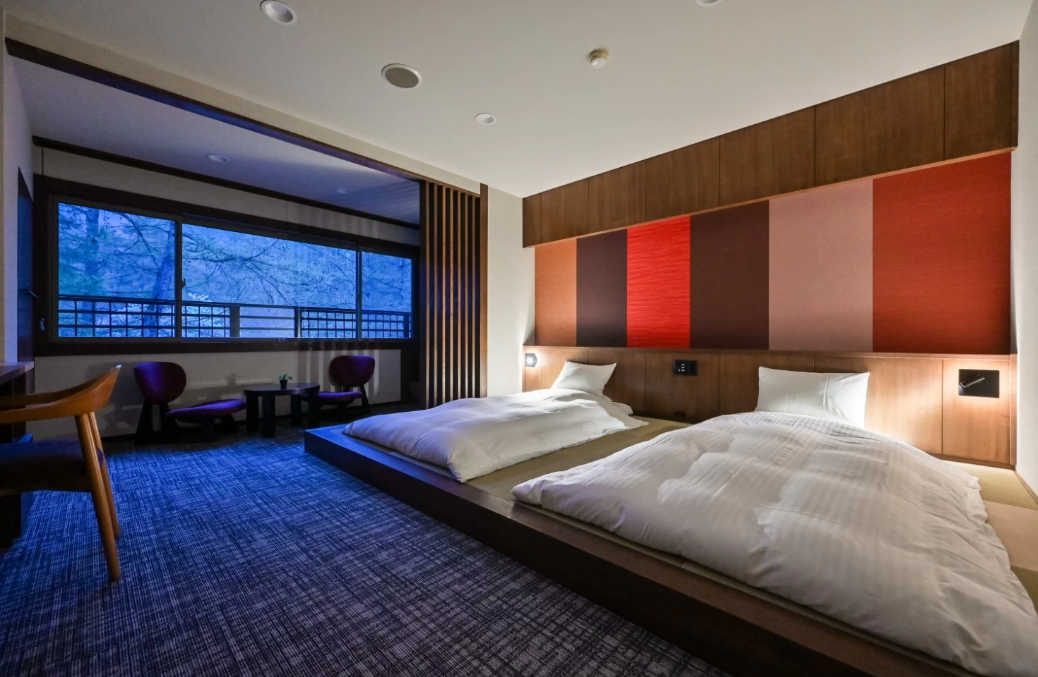 「湯の沢温泉 時の宿すみれ」は、豊かな自然に囲まれたおふたり様専用の隠れ家宿です。それぞれデザインが異なる全10室の客室にはテレビや時計を置かず、日常を離れてふたりだけの時間をゆったり過ごせます。夕食は米沢牛のステーキやすき焼き、しゃぶしゃぶなど、上質な旨味を引き出したフルコースを堪能。大切な人と静かな時間を重ねたいカップルにおすすめの温泉宿です。源泉掛け流しの湯の沢温泉は、大浴場や貸切露天風呂で四季の景色を眺めながら楽しめます。