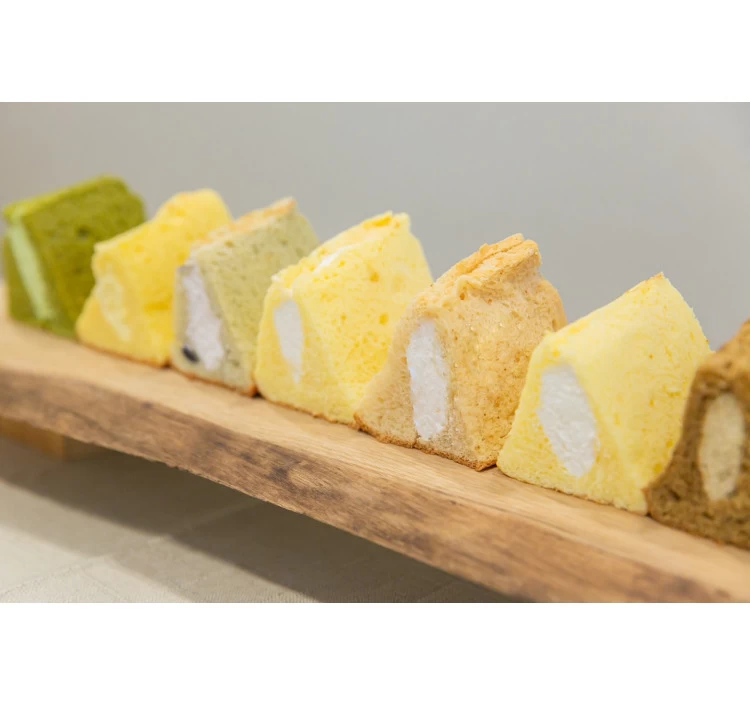 しっとりとしたシフォン生地に生クリームを挟んだ“シフォンケーキ”の詰め合わせである。ふんわりとした軽い食感と、甘さを抑えた味わいが特徴。フレーバーはプレーンやチョコ、フルーツ系など複数種類から店側が選定し、8個セットで提供される。