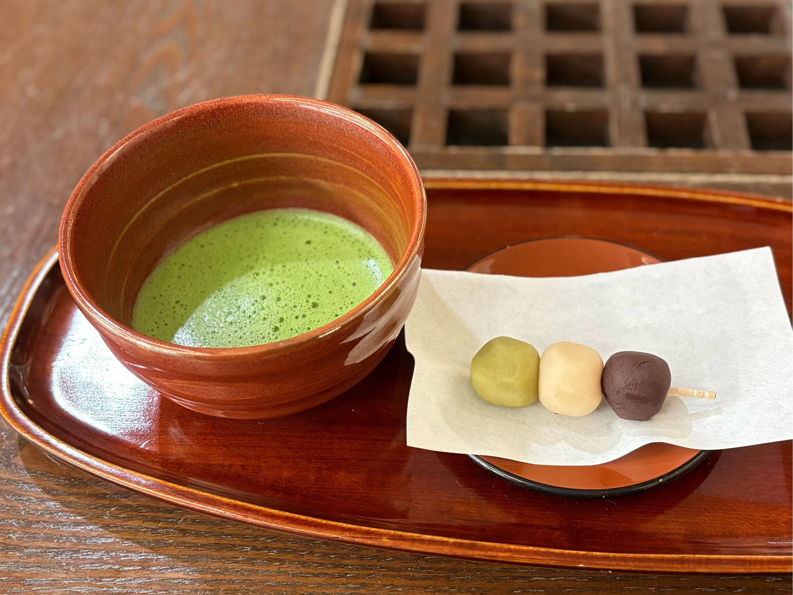 - ★ 店内では、抹茶または冷緑茶と「坊っちゃん団子」のセットなどが楽しめます。小豆・白・抹茶の3色の餡は上品な甘さで、北海道産「大手亡豆(おおてぼう:白いんげん豆の代表的品種)」と北海道十勝産「しゅまり小豆」を使用しています