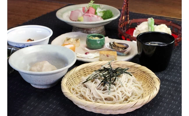古い柱や天井の梁をそのまま活かした温かみのある空間で、手打ちそばや釜揚げうどん、会席料理を堪能できます。ざるそばに天ぷらやお刺身がセットになった「そば会席」のほか、手打ちうどんを鶏肉や野菜などと一緒にいただく「うろんすき」もおすすめです。