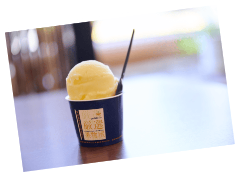 江戸時代末期に創業し、150年以上続く老舗青果店。湯浅産のフルーツをずらりと取り揃えているほか、「フルーツの旬、最高においしい状態を多くの人に伝えたい」と、ジェラート、フルーツジュース、コンフィチュールも用意しています。自社工場でつくるジェラートは常時10種。全体の40%以上がフルーツで構成されていて、旬のおいしさがギュッと詰まっています。冬が近づくと店内は有田みかん一色に。同じ品種のみかんを農園ごとに食べ比べできるのは、みかんの産地にある青果店ならでは。