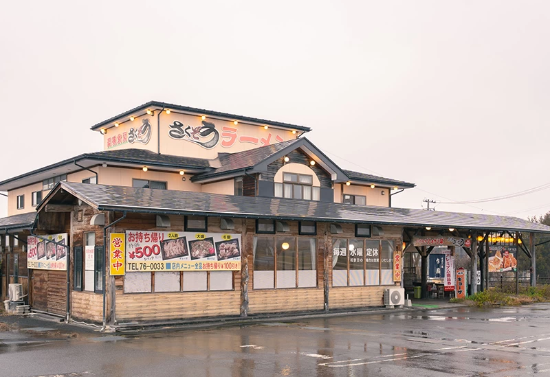 親しみやすい雰囲気が魅力的なラーメン店。モチモチとした麺と煮干しの香りが口いっぱいに広がるダシが自慢の中華そばが人気です。そんな中華そばと並ぶ、このお店もうひとつのおすすめが、会津名物の「大名ソースカツ丼」。たっぷりとかけられたソースの香りが食欲をそそり、遠方からも多くのファンが訪れます。大きな器に盛りつけられたカツ丼はボリューム満点で、大満足間違いなし。ほかにも、ご当地グルメなどバラエティ豊かなメニューを多数取り揃えています。