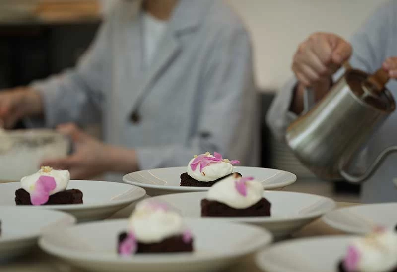 自社養蜂場のハチミツと、会津地方の野菜を生かした料理が楽しめるガーデンカフェレストラン「b Kitchen」。トーストやピッツァ、スイーツ、ドリンクまで、ハチミツの魅力を多彩に味わえるのが特徴だ。なかでも、季節のハチミツを食べ比べできる「ハニーテイスティングプレート」は、香りや甘さの違いをじっくり堪能できる一皿。代表のイタリア滞在経験を活かした、郷土食材×イタリアンのアレンジも魅力となっている。隣接するキッチンカーでは、石窯焼きの本格ピッツァを提供。日常のランチから集まりの場まで、心も身体もほどける時間を過ごしたい。