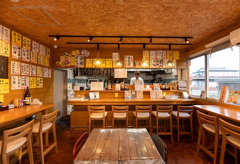 青森駅から徒歩すぐ。白を基調とした、明るく開放的なカフェのような空間が魅力の「青森きっちんPOPE」。地元の新鮮な魚介をふんだんに盛り付けた「おまかせ海鮮丼」や、希少な「ヤリイカの一夜干し」が人気メニューです。青森県産牛を使った料理も揃い、観光やランチにぴったり。駅から近く、気軽に立ち寄れるのも嬉しいポイントです。