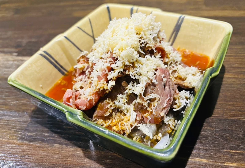 水晶板の美しい見た目とともに、ふっくらジューシーに仕上がったワンランク上の焼き肉が堪能できるお店。水晶板で焼くことにより油はねや煙がほとんど発生しないため、洋服や髪ににおいが付きにくく、デートや記念日にもおすすめです。お店のイチオシは、一度も冷凍していない生ラムジンギスカン。生ラムは、くさみが少なくやわらかい肉質が特徴で人気があり、塩か醤油につけていただけば、肉本来の味わいが楽しめます。美塩ソムリエの資格を持つ店主が厳選した塩を使えば、新感覚の生ラム体験が味わえます。
