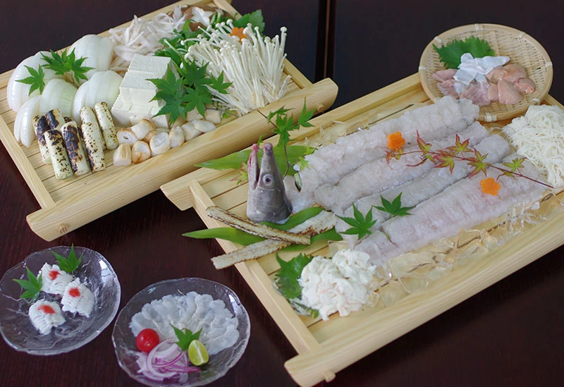 その日水揚げされた、新鮮な地魚をリーズナブルに味わえる「沖」。地元の漁師の方々にも愛される活魚専門店です。いけすから出されたあとすぐに調理される魚介を刺身や天ぷら、寿司などさまざまな調理方法でいただけます。夏はハモすき、冬は「淡路島3年とらふぐ」のてっちりなどが人気。土・日曜日限定のランチでは、煮物や淡路島名物手延べそうめんのついた定食で気軽に淡路島の食を堪能できます。