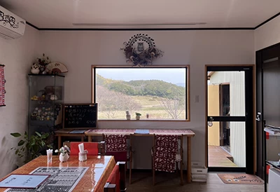 兵庫県淡路市木曽下に店を構える「ふく福」は、発酵食品と自家栽培野菜を使った料理を提供する、体にやさしいカフェ。“食の大切さに気づき、麹の良さをもっと知ってほしい”という思いから、店主が別荘を改装してオープンしました。看板メニューは「花ちらし御膳」。ビーツで炊き上げたすし飯の上に、塩麹漬けのタイやトマトのぬか漬けなど、発酵の力を活かした彩り豊かな食材が、花のように美しく並びます。1日10食限定のため、ランチは予約がおすすめです。“絵画の席”と呼ばれるカウンター席からは、淡路島の豊かな自然を四季折々に一望できます。季節の花々や訪れる鳥たちを眺めながら、心癒されるひとときを楽しめます。お一人様はもちろん、大切な人と訪れたくなる、とっておきのカフェです。