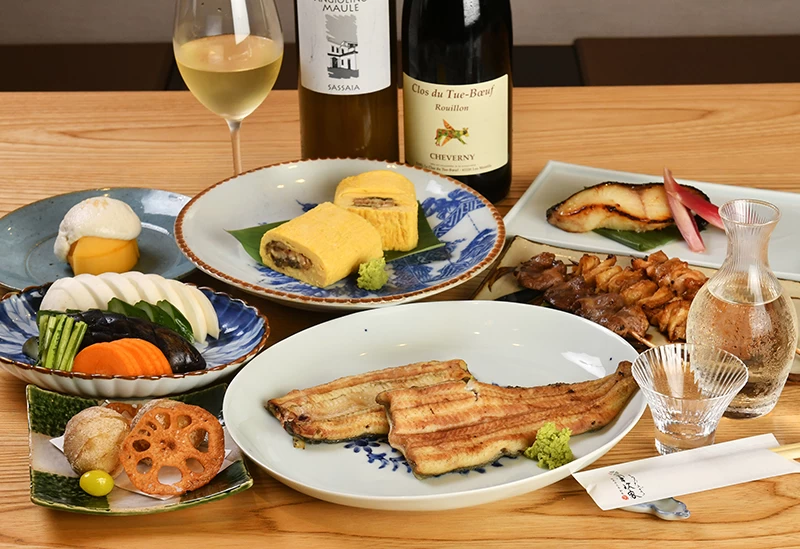 創業100年を超える老舗うなぎ店。店主が目利きしたこだわりのうなぎを炭火でじっくりと焼き上げ、100年もの時を超えて継ぎ足されてきた秘伝のタレで仕上げています。焼いたあとに蒸しているため、口当たりのやわらかいふっくらとした身が特徴です。かば焼だけでなく、塩とワサビでいただく白焼きにも注目。店主が厳選した自然派ワインや地酒とともに味わいましょう。