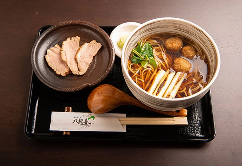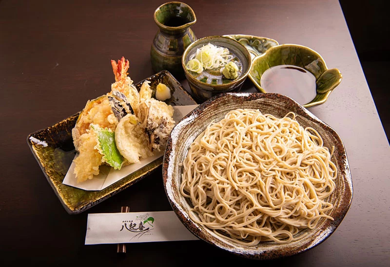 函館ドライブの食事に立ち寄りたいのが「手打ち蕎麦 八起喜」です。時期ごとに産地を厳選した北海道産そば粉を使い、「二八」と「挽きぐるみ」から選べる本格手打ち蕎麦が自慢。特に低温調理で柔らかく仕上げた鴨肉と、鴨団子の旨味が溶け出した「鴨せいろ」は絶品です。大きな海老天がのった天丼などご飯物も充実。スタイリッシュな店内は広めの席でゆったり過ごせ、駐車場も完備されているので、ドライブ途中のランチに最適です。