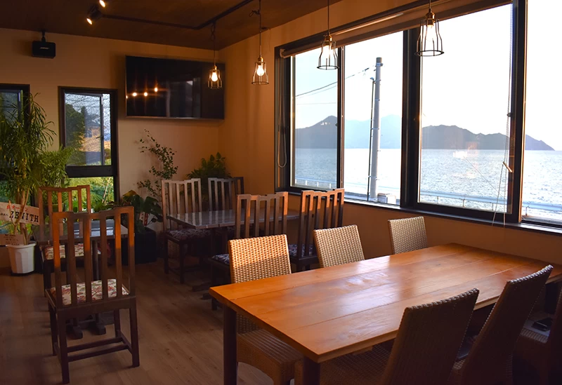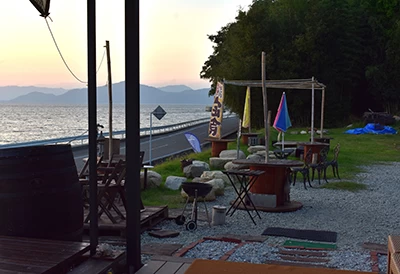 広島呉道路呉ICより約50分の場所にあり、波の音や鳥のさえずりに包まれながらモーニングやランチ、豊富なドリンクが楽しめる人気の食事処。モーニングでは、焼きたてのトーストセットやホットサンドに加え、香り高いコーヒーをゆっくり楽しめる。ランチタイムには海鮮を中心としたさまざまなメニューが気軽に味わえます。昼にはきらめく海、夕日に染まる空、夜は満天の星を見渡せる絶景が自慢で、バーベキューや宿泊も可能です。