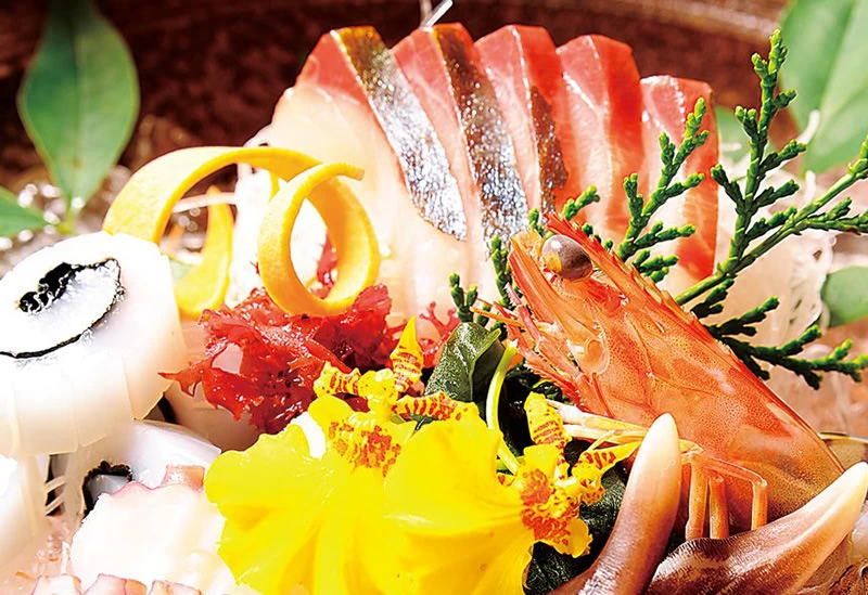 福山・鞆の浦産の鮮魚を扱う「なりこま」は、創業50年余りの割烹居酒屋。鯛をまるごと一匹使用したインパクト抜群の「鯛そうめん」や、福山の郷土料理「うずみ」など福山ならではのグルメも味わえます。厳選された7枚のとらふぐのヒレを使用した「特濃ひれ酒」も自慢。瀬戸内を中心とした最高の食材を使った会席料理も用意しています。個室ありの店なので、会社の宴会や会食などにも最適ですよ。