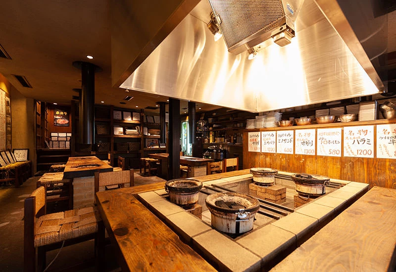 「若葉屋 玉宮本店」は、品質にこだわった精肉やホルモンをリーズナブルな価格でいただける焼肉店です。古民家風の店内には、テーブル席と35名まで収容できる座敷席を揃えています。お肉は飛騨牛をはじめ、ブランド牛のハラミやサガリなど豊富な種類を用意。なかでも、小腸やミノなどのさまざまな部位を味わえるホルモンのメニューは臭みがなく、各部位の味と食感が楽しめると人気を博しています。食後には、白胡麻を使用したデザートをいただくのがおすすめです。