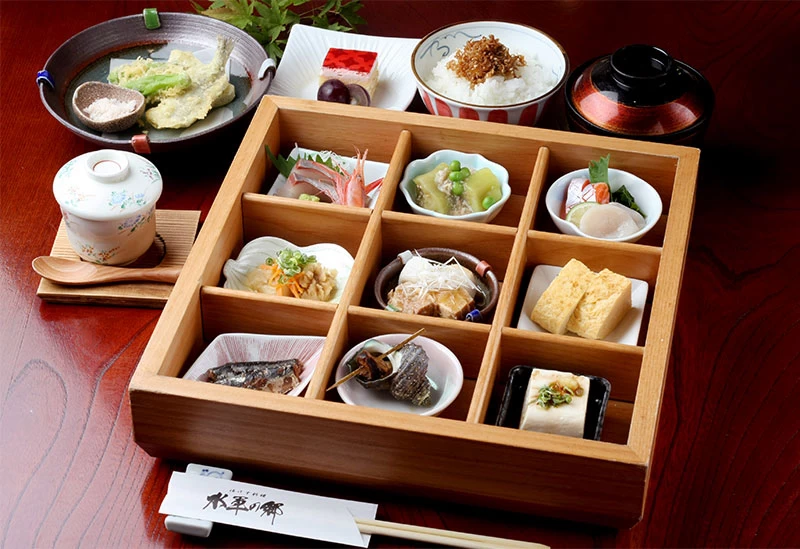 また、ランチタイムに提供される「かぐや姫御膳」は、季節の野菜や魚をふんだんに使用した彩り豊かなメニューで、さまざまな味を少しずつ楽しめるのが魅力です。見た目も美しくおしゃれで、女性からの人気が高いのも納得の内容です。旬の味覚を存分に堪能できる一品となっています。カップルでのデートや家族でのランチにぜひご利用ください。