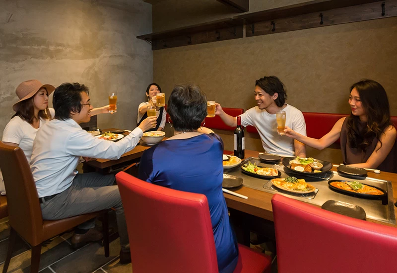 店内には、ゆったりと身体を預けられるソファータイプの個室を完備。テレビ付きのプライベート空間は、周りを気にせず会話を楽しみたいデートや女子会に重宝します。運が良ければ、バーテンダーによる華麗なカクテルパフォーマンス「フレアショー」が見られることも。美味しい料理と心躍る演出で、記憶に残るディナータイムをお過ごしください