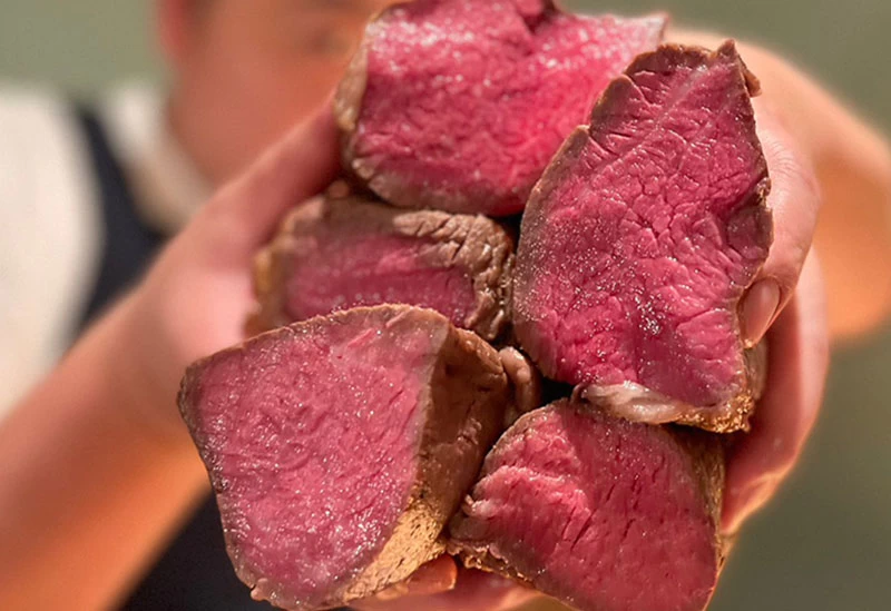 店主が目利きしたA5ランク和牛や活アワビを、臨場感あふれる鉄板焼きで堪能できる「寅兎午」。名物のステーキは肉質を見極めながら絶妙な火入れで焼き上げられ、表面は香ばしく、中は肉汁があふれるジューシーな仕上がりです。素材の旨味をワサビや塩でシンプルに味わう至福のひと時は、広島の地酒やワインとも相性抜群。生食できるほど新鮮なウニや地元野菜など妥協のない食材が揃い、ライブ感のあるカウンターや落ち着いた個室で、上質なディナータイムをゆったりと満喫できます。