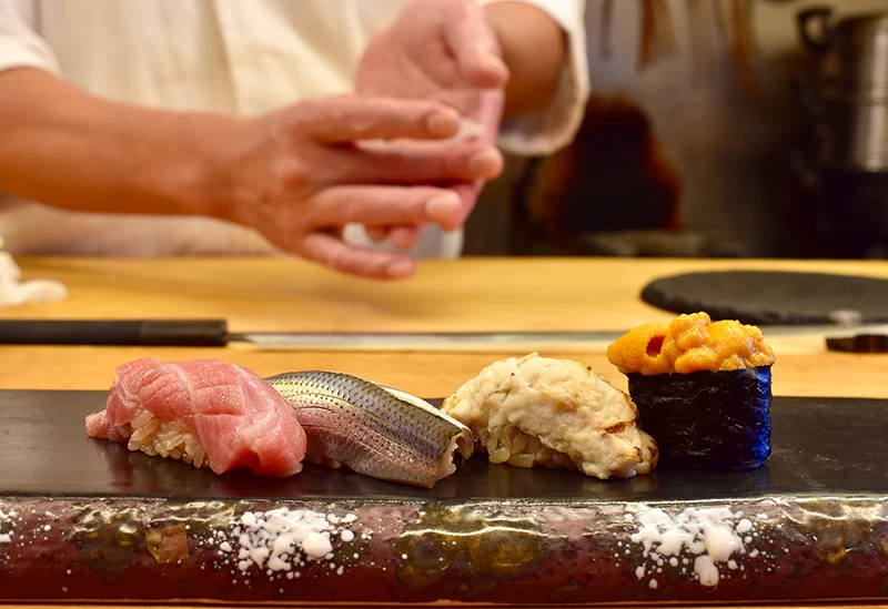 北海道産の濃厚なウニや瀬戸内で獲れた旬のコイワシなど、厳選された海の幸を堪能できる「すし凛道」は、広島での和食ディナーにふさわしい本格寿司処です。2種類の米をブレンドし、こだわりの赤酢でふっくらと仕上げたシャリが、甘みたっぷりのボタンエビや豊洲市場から届く極上ネタの旨味をさらに引き立てます。胡町停留場から徒歩約5分とアクセスも良好。職人技を望むカウンター席や、ゆったりとした掘りごたつ席を備え、記念日や上質な食事会に心地よい時間を約束します。