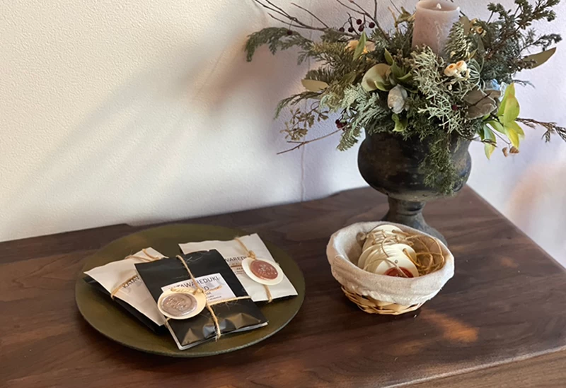 こちらのお店は、フィンランドから届いた木材を釘を使わずに組み立てたログハウスが特徴的です。店名はフィンランド語で「我が家」という意味で、オーナーの「おうちにいるような温かいカフェにしたい」という思いが込められています。