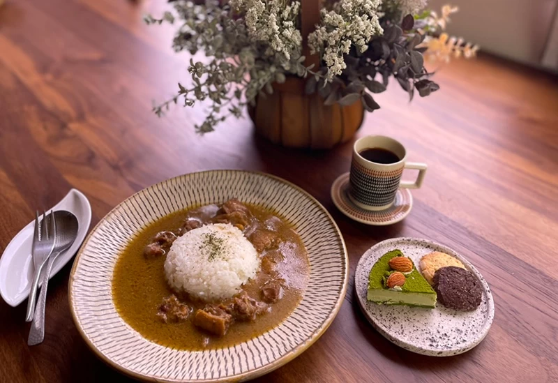 木の温もりに包まれた心地よい時間を過ごせる「喫茶 片割れ月」では、店内の味をそのまま持ち帰れる商品も充実しています。「広島赤鶏のアヒージョ」や「手羽先のハーブロースト」といった惣菜、「きのこのポタージュ」などのスープ類は冷凍販売しており、自宅の食卓でも楽しめます。さらに、手土産に最適なコーヒーや、よつ葉バターを使った手作りクッキーも人気。広島市の「アーカムコーヒー」がこの店のために特別にブレンドしたスペシャリティコーヒーや、兵庫県尼崎市のカフェ「ホロイムア」によるロウスイーツも店内で味わえます。看板メニュー「鶏出汁のカレー」や昼飲みに合うアルコールとともに、喫茶ならではの豊かな時間を提供しています。